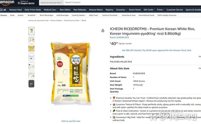 한편, 이번 아마존 입점을 통해 미국 소비자들은 온라인으로 손쉽게 ‘임금님표 이천쌀’을 구매할 수 있으며, 미국 현지 물류창고를 활용한 신속 배송 서비스도 제공될 예정이다.