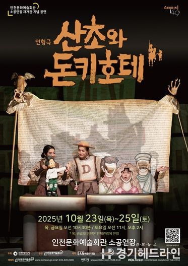[경기헤드라인=문수철 기자] 인천문화예술회관은 오는 10월 23일부터 25일까지 소공연장에서 예술무대산의 가족 인형극 〈산초와 돈키호테〉를 무대에 올린다. 이번 공연은 어린이 눈높이에 맞춘 명작을 소개하는 인천문화예술회관의 ‘어린이명작무대’의 일환으로 마련됐다.
