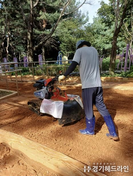 다른 1곳인 구미동 공공공지 내 750m 길이의 황톳길은 로터리 기기를 내년도에 추가 구매한 뒤 흙 뒤집기 작업을 한다.