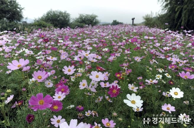[경기헤드라인=문수철 기자] 성남시 탄천 태평 습지생태원(수정구 태평동) 일대에 백만 송이의 코스모스 길이 펼쳐져 가을 정취를 전하고 있다.