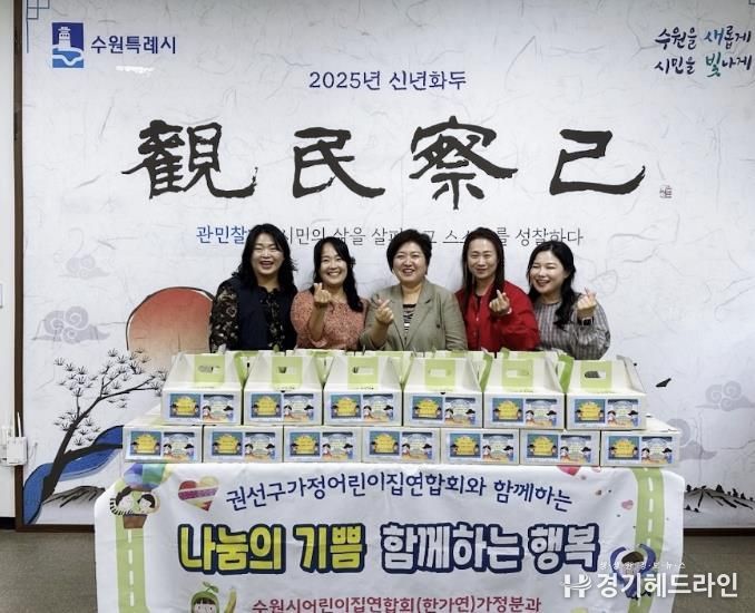 김향아 권선구가정어린이집연합회장은 “아이들과 함께 나눔의 기쁨을 실천할 수 있어 뜻깊게 생각하며, 앞으로도 지역사회에 도움이 되는 활동을 이어가겠다”라고 전했다.