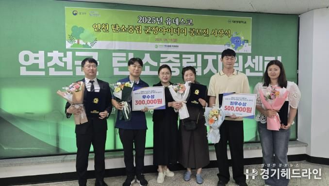 [경기헤드라인=김윤종 기자] 연천군 탄소중립지원센터는 지난 9월 19일, ‘유네스코 연천 탄소중립 군정 아이디어 공모전’ 시상식을 개최했다. 이번 공모전은 기후 위기 극복과 탄소중립 실현을 위한斬신하고 실천 가능한 군정 아이디어를 발굴하기 위해 추진됐다.