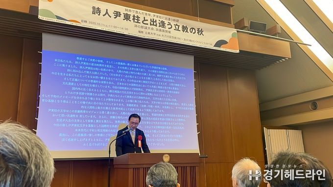 [경기헤드라인=문수철 기자] 임태희 경기도교육감이 11일 일본 도쿄 릿쿄대학에서 열린 ‘윤동주 시인 서거 80주년 기념 시낭송 대회 및 기념비 제막식’에 참석했다.