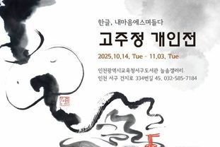 [경기헤드라인=문수철 기자] 인천광역시교육청서구도서관은 10월 14일부터 11월 3일까지 늘솜갤러리에서 고주정 작가의 현대캘리그라피 전시 ‘한글, 내 안에 스며들다’를 운영한다.