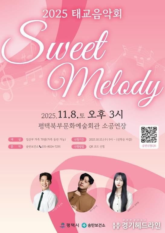 [경기헤드라인=문수철 기자] 평택시 송탄보건소는 임산부 가족의 정서적 안정과 행복한 출산 환경조성을 위해 오는 11월 8일 ‘2025 태교 음악회『Sweet Melody』’를 개최한다.