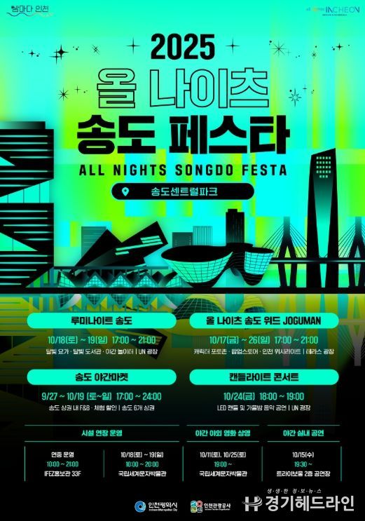 [경기헤드라인=문수철 기자] 인천광역시와 인천관광공사는 오는 10월 17일부터 26일까지 송도센트럴파크 일대에서 '2025 올 나이츠 송도 페스타'를 개최한다고 밝혔다.