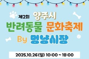 [경기헤드라인=김윤종 기자] ㈜빅프렌즈가 주관하는 ‘2025년 양주시 반려동물 문화축제’가 오는 26일 옥정동 선돌근린공원에서 열린다.