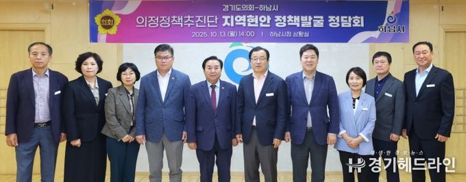 [경기헤드라인=문수철 기자] 경기도의회 의정정책추진단은 13일 하남시청에서 열린 ‘지역 현안 정책 정담회’를 통해 하남지역의 주요 정책 현안과 경기도의회 차원의 지원방안을 논의했다.