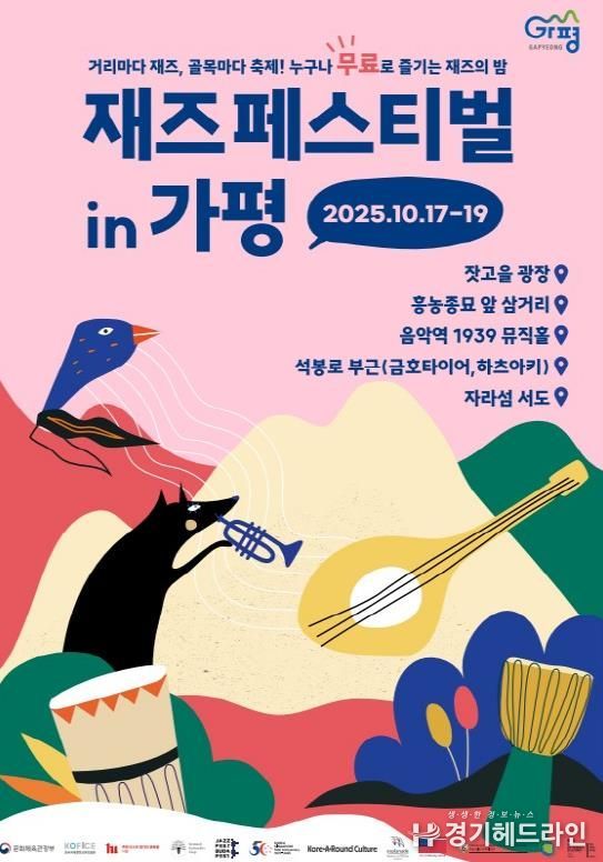 [경기헤드라인=문수철 기자] 가평군은 (사)문화현상과 함께 오는 17일부터 19일까지 3일간 ‘재즈페스티벌 in 가평’을 개최한다. 이번 축제는 누구나 부담 없이 즐길 수 있는 무료 음악 축제로, 가평읍내 곳곳(잣고을 광장, 흥농종묘 앞 삼거리, 음악역1939 뮤직홀, 자라섬 서도 등)을 재즈 선율로 물들일 예정이다.
