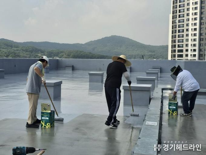 파주교육지원청은 최근 집중호우에 따른 옥상 누수로 교실과 복도에 빗물이 누수된 심학중학교에 현장지원팀을 지원하여 2회에 걸쳐 직접 옥상방수 보수공사를 실시하는 등 현장지원에 노력하고 있다.