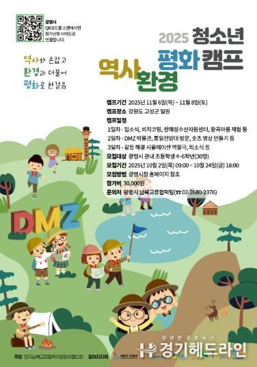 이번 캠프는 오는 11월 6일부터 8일까지 2박 3일 강원도 고성군 일원에서 진행하며, 청소년들이 분단의 현장을 직접 보고 느끼며 평화의 의미를 배우는 현장 중심 체험형 프로그램으로 운영한다.