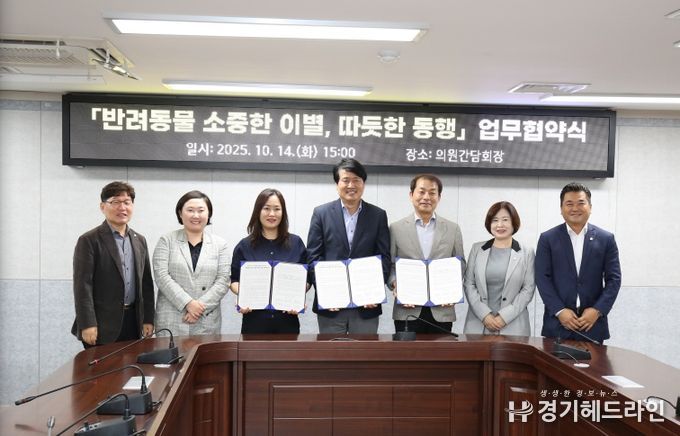 [경기헤드라인=문수철 기자] 인천 서구는 14일 관내 동물장묘업체와 함께 ‘반려동물 소중한 이별, 따뜻한 동행’을 주제로 반려동물 장례문화 지원 업무협약을 체결했다. 이번 협약은 서구의회 의원연구단체인 서구반려동물정책연구회가 공동발의해 전국 최초로 제정한 ‘인천광역시 서구 반려동물 장례문화 지원 조례’를 근거로 진행됐다는 점에서 의미가 크다.