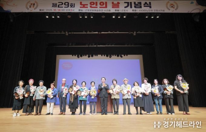 [경기헤드라인=문수철 기자] 군포시는 10월 14일 (사)대한노인회 군포시지회 주관으로 군포문화예술회관 수리홀에서 ‘제29회 노인의 날’ 기념식을 개최했다.