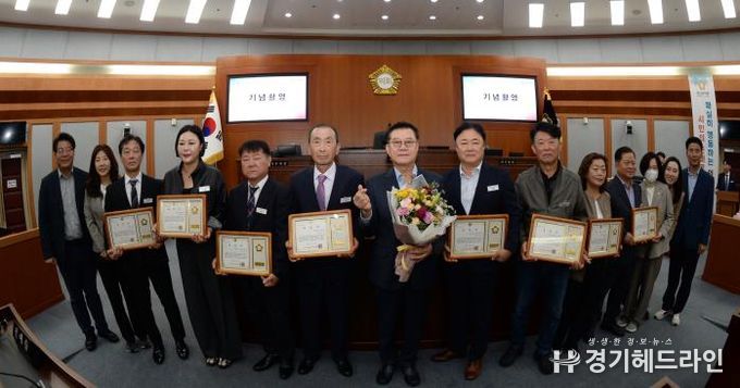 [경기헤드라인=문수철 기자] 오산시의회는 16일 의회 본회의장에서 ‘제37회 오산시민의 날’을 기념해 지역사회 발전에 기여한 시민 8명에게 의장 표창을 수여했다.