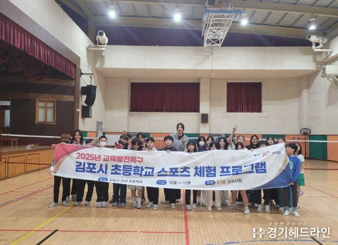 [경기헤드라인=문수철 기자] 김포시가 10월 16일 김포 푸른솔초등학교에서 '2025년 김포시 교육발전특구 스포츠 체험 프로그램'의 첫 수업을 실시하며 본격적인 사업 운영에 들어갔다.