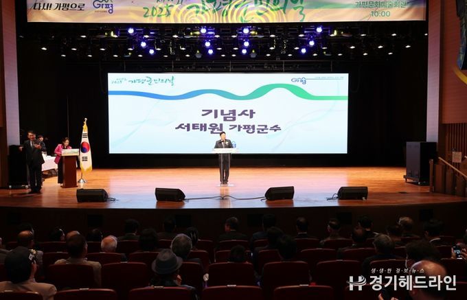 [경기헤드라인=문수철 기자] 가평군은 17일 가평문화예술회관에서 ‘제58회 가평군민의 날 기념식’을 성황리에 개최했다고 밝혔다. 이날 행사에는 서태원 가평군수를 비롯해 김동연 경기도지사, 김용태 국회의원, 김경수 군의회 의장과 의원, 지역 기관 및 사회단체장, 군민 등 600여 명이 참석해 군민의 날을 축하했다.