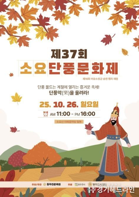 이번 축제는 천혜의 자연경관을 자랑하는 소요산의 단풍을 배경으로 전통과 현대가 어우러진 공연, 시민 참여 프로그램, 환경 캠페인, 역사 재현 퍼레이드 등 다양한 볼거리로 가을의 정취와 문화적 감동을 선사할 예정이다.