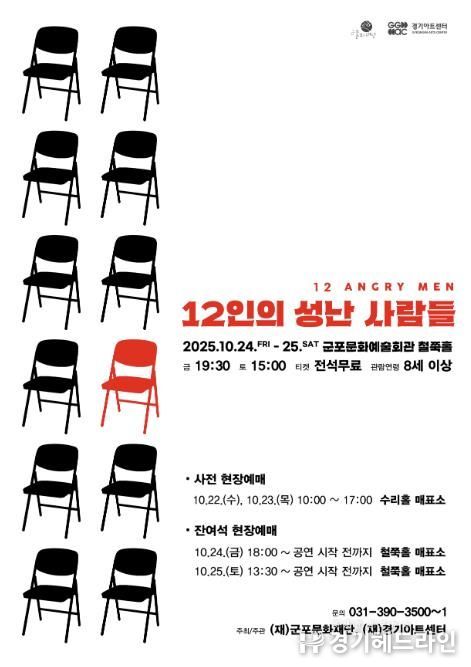[경기헤드라인=문수철 기자] (재)군포문화재단은 오는 10월 24일 ~ 10월 25일 군포문화예술회관 철쭉홀에서 기획공연“12인의 성난 사람들”을 선보인다.
