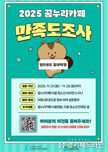 [경기헤드라인=문수철 기자] 의왕시청소년재단 산하 꿈누리카페(는 청소년의 이용 만족도와 공간 운영 개선을 위한 ‘청소년 만족도 및 욕구조사’11월 1일부터 11월 29일까지 약 한 달간 실시 한다.