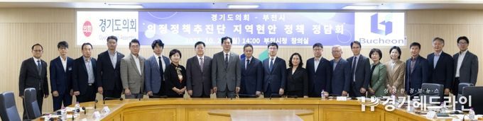 [경기헤드라인=문수철 기자] 경기도의회 의정정책추진단은 20일 부천시청 회의실에서 ‘지역 현안 정책 정담회’를 열고 부천 지역의 주요 정책 현안과 경기도의회 차원의 지원 방안을 논의했다.