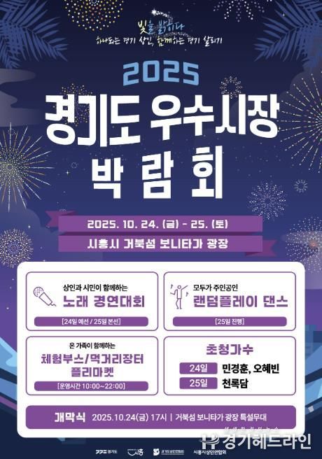 [경기헤드라인=문수철 기자] 시흥시는 오는 10월 24일부터 25일까지 이틀간 거북섬 보니타가 광장에서 ‘2025년 제11회 경기도 우수시장 박람회’를 개최한다.
