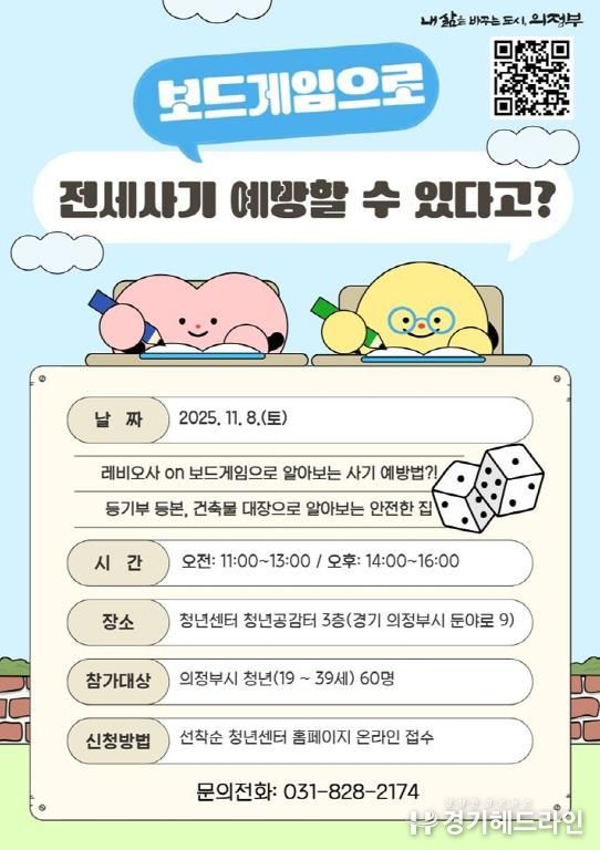 [경기헤드라인=문수철 기자] 의정부시는 11월 8일 운영 예정인 전세사기 피해 예방 교육용 보드게임 프로그램 ‘레비오사 보드ON’에 참여할 청년을 모집한다.