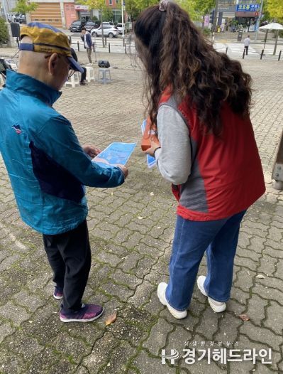 이날 협의체 위원들은 중산공원을 찾은 시민들을 직접 만나 ‘주변의 어려운 이웃을 경기도청 핫라인으로 알려주세요’가 적힌 유인물을 주민들에게 배부하며 취약계층 발굴 캠페인을 진행했다.