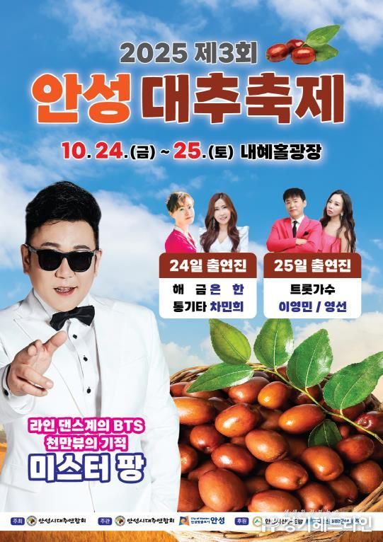 이번 행사는 안성시대추연합회와 안성시가 주관하여 진행하는 직거래장터 행사로 약 25개의 판매부스를 운영하고 대추가요제 등 각종 공연이 마련될 예정이다.