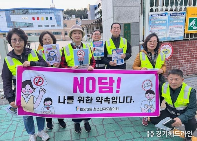 [경기헤드라인=문수철 기자] 광명시 하안3동 청소년지도협의회는 지난 20일 가림초등학교, 가림중학교, 하안사거리 등 관내 주요 지역에서 청소년 대상 금연 캠페인을 실시했다.