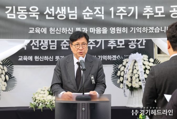 [경기헤드라인=문수철 기자] 인천광역시교육청은 21일 시교육청 본관 앞 추모공간에서 故 김동욱 선생님의 순직 1주기 추모식을 진행했다.