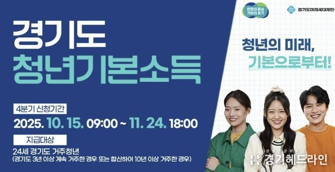 [경기헤드라인=문수철 기자] 안산시는 다음 달 24일까지 관내 거주하는 24세 청년을 대상으로 ‘2025년 4분기 청년기본소득’ 신청 접수를 진행한다고 22일 밝혔다.