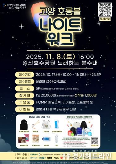 [경기헤드라인=김홍량 기자] 고양시청소년재단 일산서구청소년수련관은 시민들이 함께 걷는 ‘2025 고양 호롱불 나이트워크’를 11월 8일 오후 4시, 일산호수공원 노래하는 분수대에서 개최한다고 밝혔다.