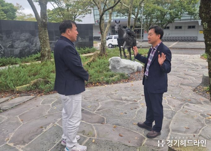 [경기헤드라인=문수철 기자] 경기도의회 농정해양위원회 부위원장 윤종영 의원(국민의힘, 연천)은 10월 22일 한국마사회 제주본부를 방문해 군마 ‘레클리스’ 기념행사의 의미를 공유하고, 경기도와 제주특별자치도, 한국마사회 간 협력 방안을 논의했다.