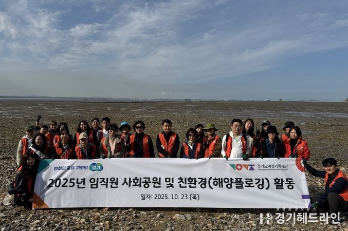[경기헤드라인=문수철 기자] 경기도여성가족재단은 23일 화성시 고온항 및 궁평항 일대에서 임직원 36명이 참여한 가운데 ‘2025년 사회공헌 및 친환경 활동’(해양 플로깅)을 펼쳤다.