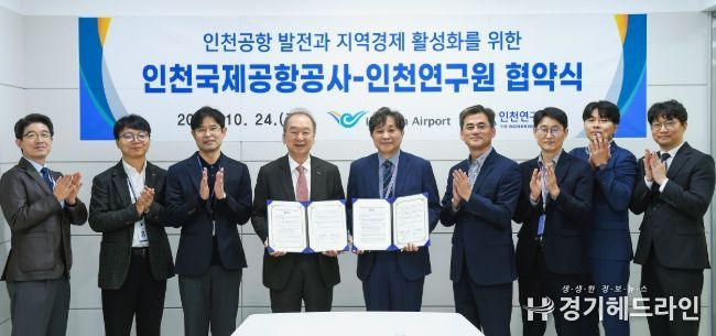 [경기헤드라인=문수철 기자] 인천국제공항공사는 24일 오전 인천공항 제2여객터미널 회의실에서 인천연구원과 인천공항 및 지역경제 발전을 위한 연구협력 강화 업무협약(MOU)을 체결했다고 밝혔다.