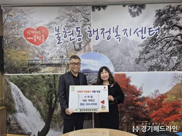[경기헤드라인=김윤종 기자] ㈜두림은 지난 23일 불현동 행정복지센터를 방문해 소외계층을 돕기 위한 성금 50만 원을 기탁하며 연말 기부 릴레이에 동참했다.