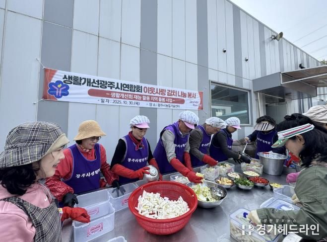 [경기헤드라인=정현수 기자] 생활개선광주시연합회는 지난 30일 ‘이웃사랑 김치 나눔 행사’를 열고 지역 내 취약계층 220가구에 정성껏 담근 물김치를 전달했다.