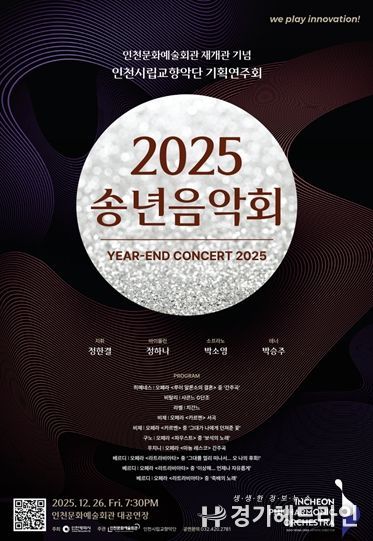 [경기헤드라인=문수철 기자] 인천시립교향악단이 한 해의 마지막을 화려하게 장식할 인천문화예술회관 재개관 기념 기획연주회 〈2025 송년음악회〉의 프로그램과 티켓 예매 일정을 전격 공개했다.