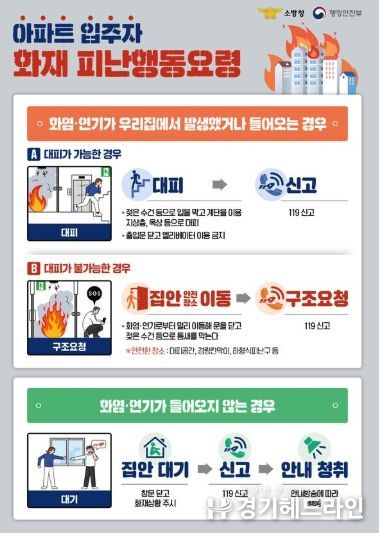 [경기헤드라인=김홍량 기자] 파주소방서는 최근 아파트 화재가 잇따라 발생하면서 공동주택 주민들의 안전 의식과 대피요령 숙지가 무엇보다 중요하다는 판단 아래 주민들의 소중한 생명을 지키기 위한 대피요령 홍보 활동에 나선다.