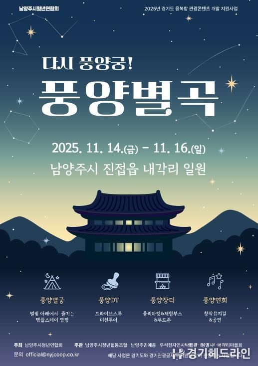 또 ‘풍양장터(플리마켓·푸드존)’, ‘풍양연회(뮤지컬·공연)’ 등 부대행사도 마련, 다양한 즐길거리와 볼거리를 제공할 예정이다. 사전 예약 등 전체 프로그램에 대한 자세한 내용은 ‘풍양별곡’ 인스타그램 계정(@pystar2025)을 통해 확인 가능하다.