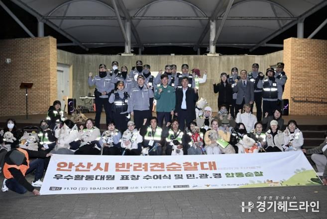 이날 합동 순찰은 이민근 안산시장을 비롯해 안산시의원, 경기남부청 기동순찰 3대, 반려견 순찰대원 및 가족 등 60여 명이 참여했다.