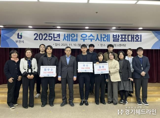 [경기헤드라인=문수철 기자] 부천시는 지난 10일 시청 소통마당에서 ‘2025년 세입 우수사례 발표대회’를 열고, 세입 증대에 기여한 우수사례 3건(최우수 1건, 우수 1건, 장려 1건)을 선정해 시상했다.