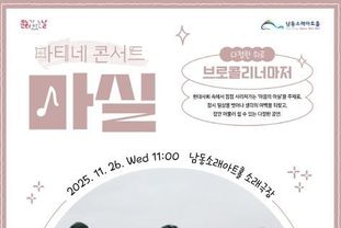 [경기헤드라인=문수철 기자] 인천시 남동구 남동문화재단은 이달 마지막 수요일인 11월 26일 재단 상설프로그램인 ‘마티네콘서트 마실’의 일환으로 ‘브로콜리너마저’ 콘서트를 개최한다고 12일 밝혔다.