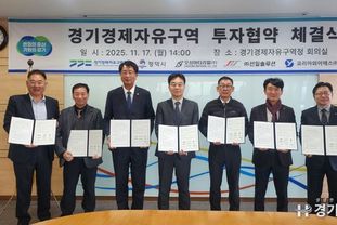 [경기헤드라인=문수철 기자] 경기경제자유구역청은 17일 경기경제청에서 평택시, 자동차부품 제조기업 3개 사와 평택 포승(BIX)지구 산업시설용지 투자협약을 체결했다.