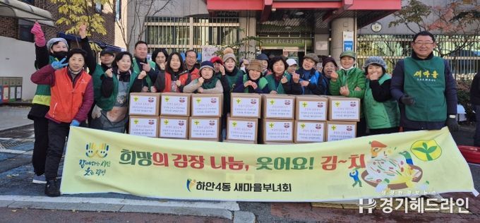 [경기헤드라인=문수철 기자] 광명시 하안4동 새마을부녀회는 지난 17일부터 18일까지 이틀간 하안4동 행정복지센터 주차장에서 ‘온정의 김장김치 담그기’ 행사를 진행했다.