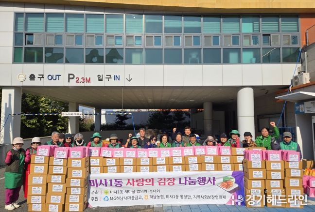 [경기헤드라인=문수철 기자] 하남시 미사1동 새마을협의회(회장 김성호)와 부녀회(회장 유정자)는 2025년 11월 19일, 본격적인 겨울을 맞아 관내 소외계층 100가구에 전달할 ‘사랑의 김장김치 나눔 행사’를 성황리에 진행했다.