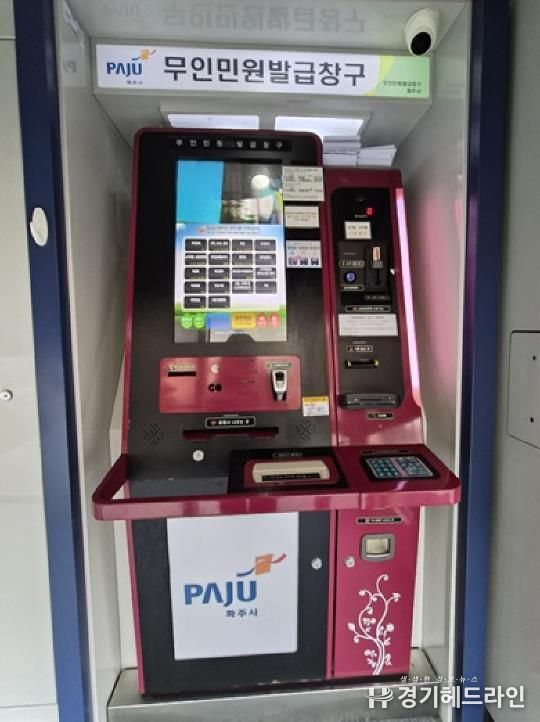 현재 파주시에는 총 45대(40개소)의 무인민원발급기가 설치되어 있으며, 18개 업무 123종의 민원서류 발급이 가능하다. 무인민원발급기 위치와 운영시간은 파주시청 또는 정부24 누리집에서 확인할 수 있다.