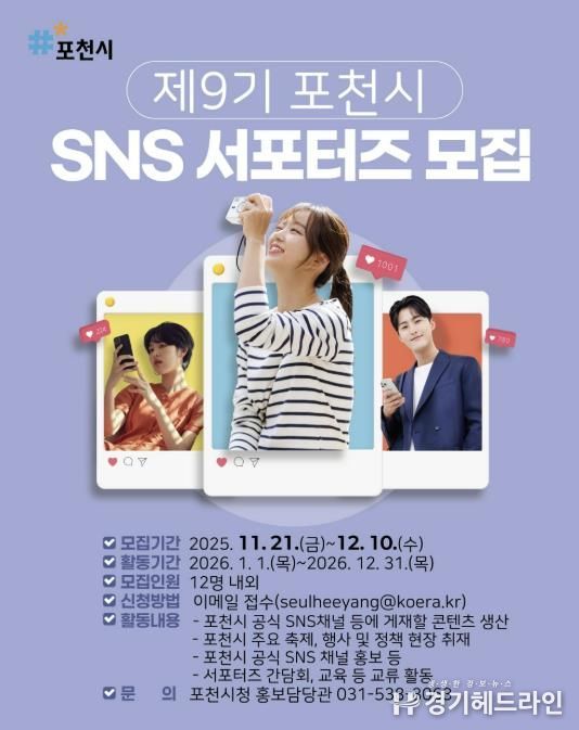 [경기헤드라인=김홍량 기자] 포천시는 시민의 시선으로 시정과 지역 소식을 생생하게 전달할 ‘2026년 제9기 포천시 누리소통망(SNS) 서포터즈’를 오는 12월 10일까지 공개 모집한다.
