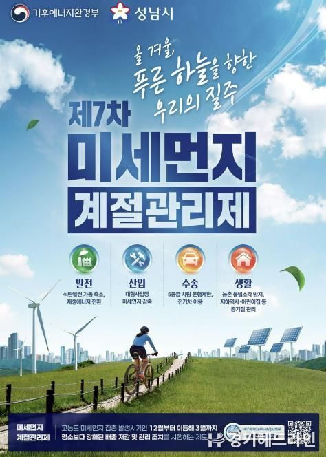 [경기헤드라인=문수철 기자] 성남시는 오는 12월 1일부터 내년 3월 말일까지 ‘제7차 미세먼지 계절관리제’를 시행한다.