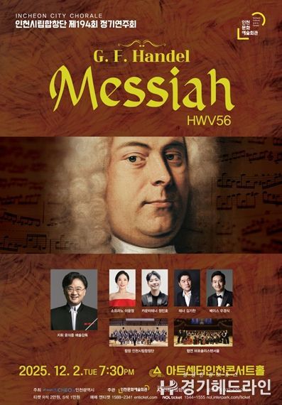 인천시립합창단의 대표 레퍼토리이자 12월 시즌 최고의 인기 공연으로 자리 잡은 헨델의 '메시아'는 멘델스존의 '엘리야', 하이든의 '천지창조'와 더불어 세계 3대 오라토리오로 꼽힌다.